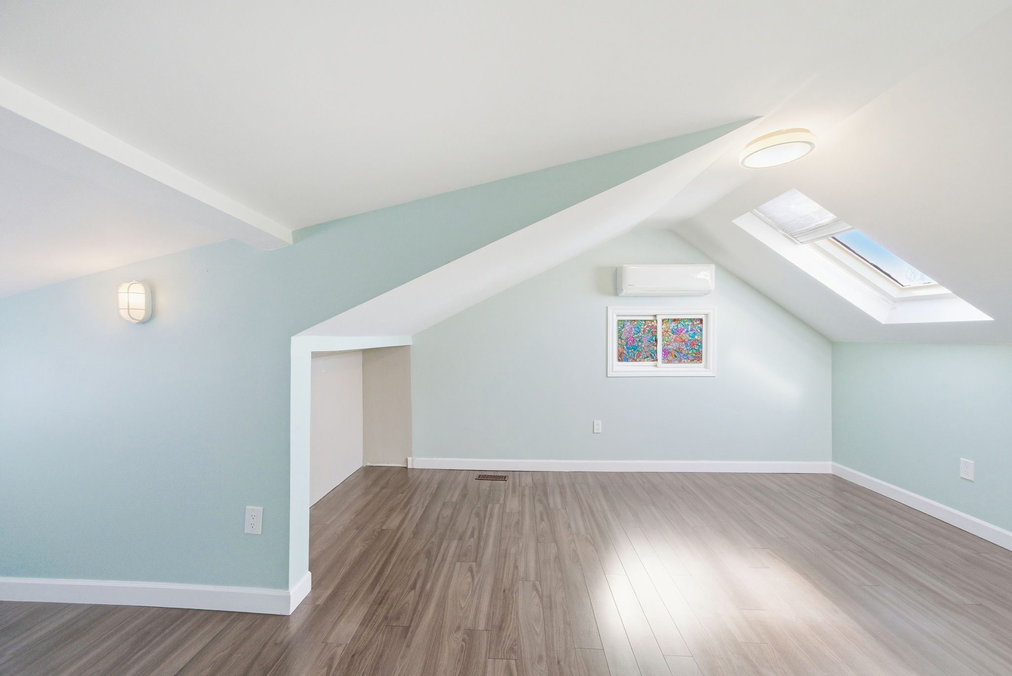 The open-concept main floor features a welcoming fireplace, and lovely character touches, all complemented by solid mechanicals and thoughtful modern updates throughout. Upstairs, the entire top level serves as a private primary suite, complete with a large closet, ensuite bathroom, and skylight that brings in soft natural light. Downstairs, the basement provides excellent versatility with an additional bedroom, bathroom, and adaptable living space ideal for guests, a home office, or recreation. Outside, a detached garage offers exciting potential as a workshop, studio, or extra storage, while the sunny backyard with deck is ready for relaxing, entertaining, or future landscaping ideas.