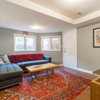 The master bedroom is spacious and has brand new ensuite bathroom with a glass enclosed shower. The second bedroom on this floor is not a tiny space, this is a room that was not just built to be a nursery or closet! Upstairs is the loft space with the private balcony. The basement bedroom is at garden level, so big windows and a direct walkout to the yard ensure this space does not feel like a basement.