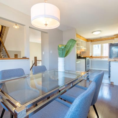 The main floor is a multi level space with architecture that focuses on creating a bright and airy feeling. Living room has soaring ceilings and direct access to the backyard, up a few stairs is the open concept kitchen and private dining room. The dining room is the perfect place for everything from casual weeknight meals, to elaborate dinner parties. The kitchen has custom details and upgrades that are focused on storage and counter space. The open layout means never being trapped in the kitchen away from the action.