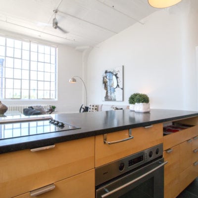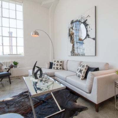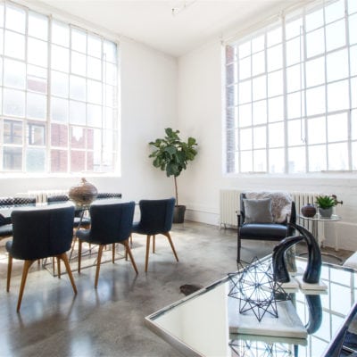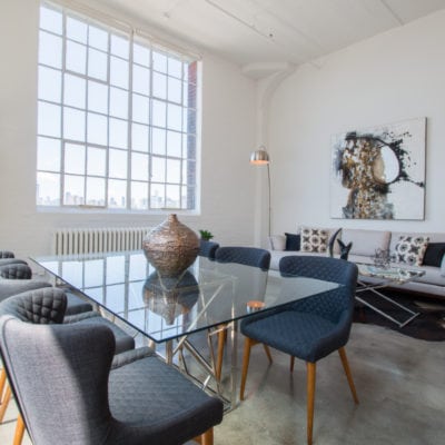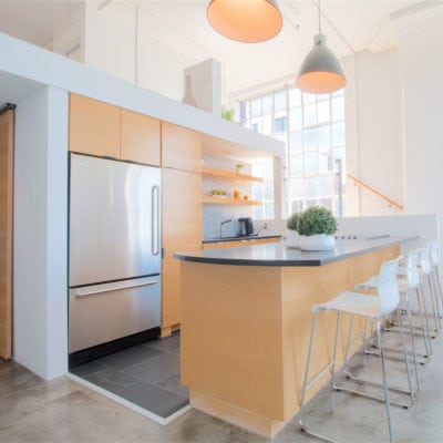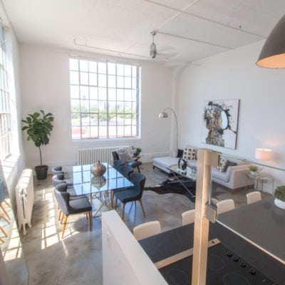 Century Loft! Own a piece of Toronto history. Modern kitchen and renovated bathroom juxtapose the industrial details this unit boasts. Original warehouse windows, fluted columns and polished concrete floors create a stunning aesthetic. Custom built storage makes intelligent use of space, Massive bedroom w/ walk in closet is a rare find! Leslieville location is steps to streetcars, shops and some of the best restaurants in the city!