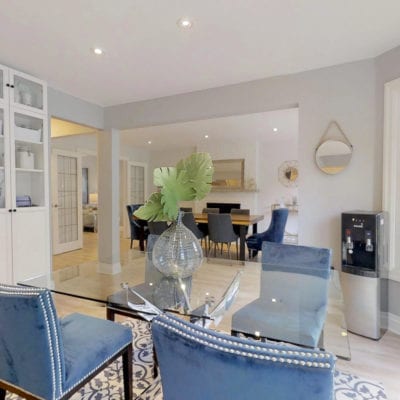 The experience of 25 Rice Drive begins as soon as you turn onto the tree lined street in this idyllic community. This bright and stylish executive home is not a cookie cutter space. Attention to detail and classic design elements can be found everywhere. The main floor is a hybrid of an open concept space that still has a some separation for spaces like a formal sitting room, main floor laundry and an office space. The heart of the main floor is the open concept kitchen, dining and family room (with a fireplace!). This area is perfect for anyone that loves to host or has young children, as the layout means you can cook and prep meals and not be away from all the action. Chat with your dinner guests, or keep an eye on little ones while creating culinary masterpieces (as well as easy weeknight meals!) in your new stylish kitchen.