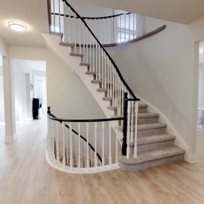 The options continue in the basement, with multiple finished rooms that can be used for rec rooms, in-law bedrooms or play spaces. When you follow the winding staircase to the top floor you will find 4 large and bright bedrooms. The Master suite has lots of storage and a private bathroom with a soaker tub and shower. The luxury elements of this house do not end inside, enjoy walking out from the kitchen onto a stone patio that is the perfect spot for summer dinners and drinks with friends. The landscaped yard is surrounded by mature trees that create a private space that feels like your own private oasis. The yard backs onto a park and ravine, adding to the amazing privacy this property offers. A large home with a private yard often includes an isolated location, and that is NOT the case at 25 Rice Drive. This is a walkable community, with so many amenities under a 10 minute walk away. Shopping centres, restaurants, pubs and more are steps away. Another great element of this location is the amount of family friendly resources steps away. Schools, library, rec centre and many parks surround you. This is truly the best of GTA living.