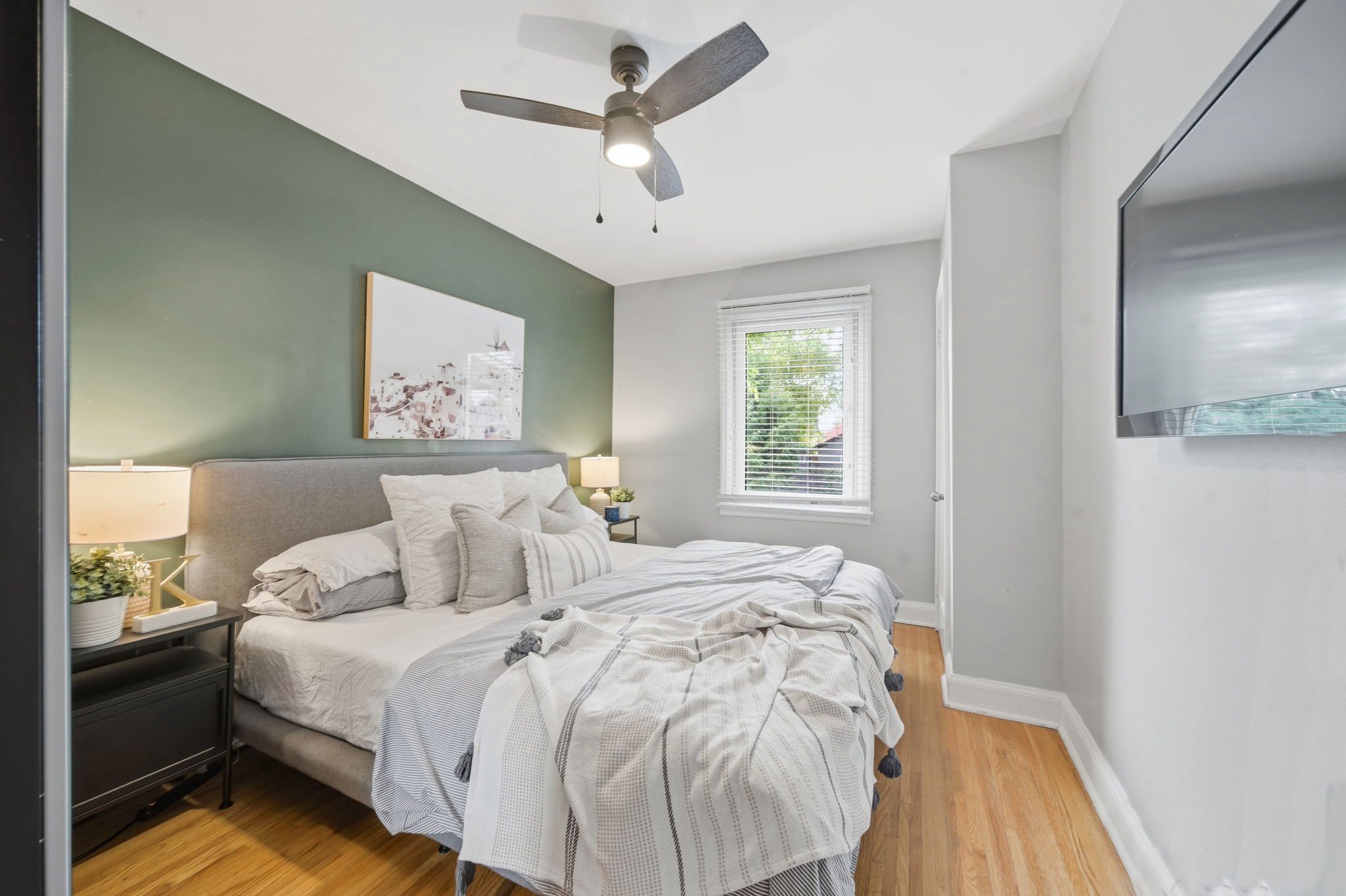 Upgrades continue with a new roof for durability, an upgraded HVAC system for optimal comfort, and high-end finishes throughout. The backyard is a true oasis in the city, featuring serene landscaping, a pond, and a deck equipped with built-in lighting, making it perfect for summer dining and outdoor gatherings.