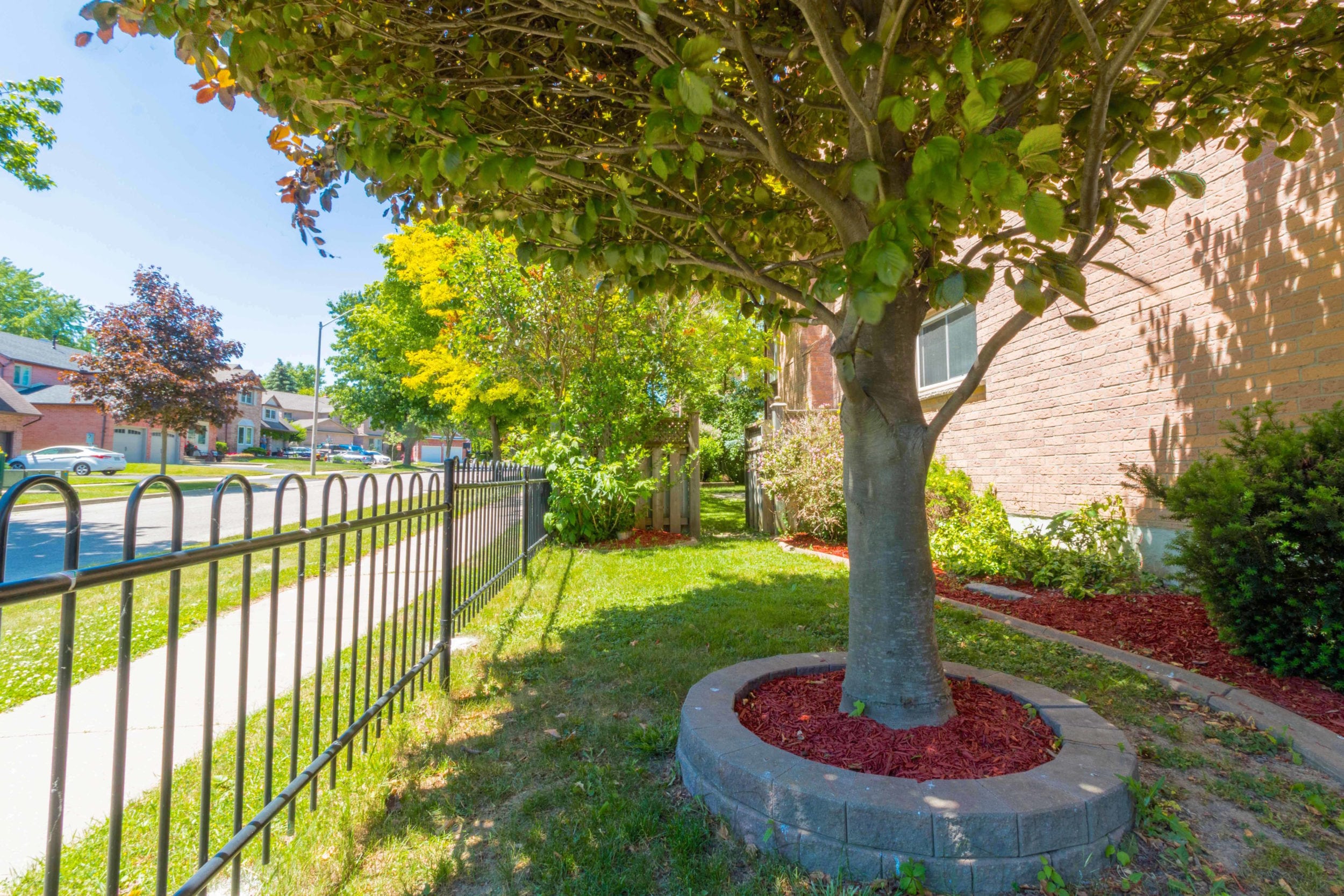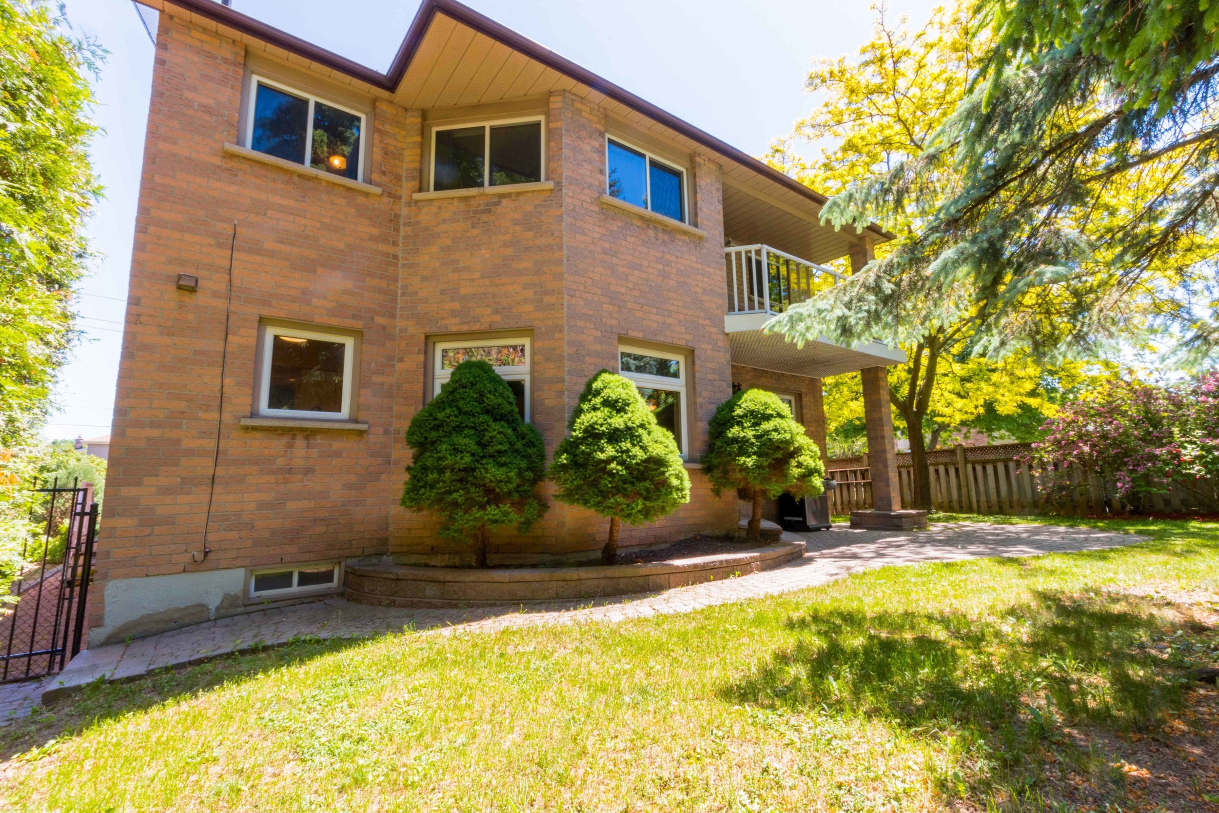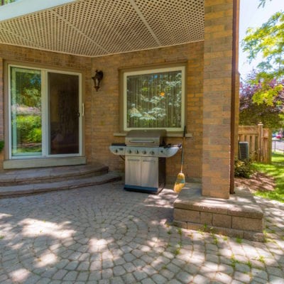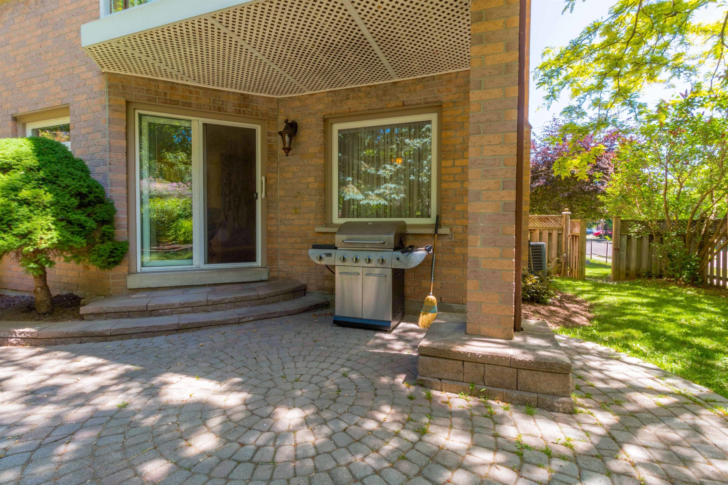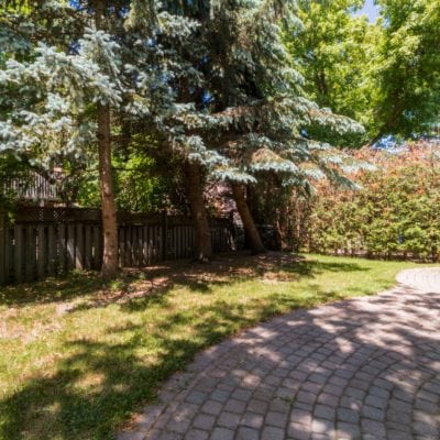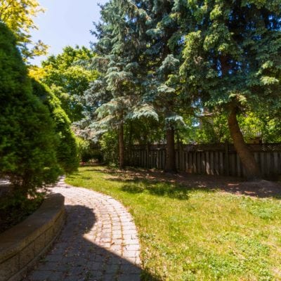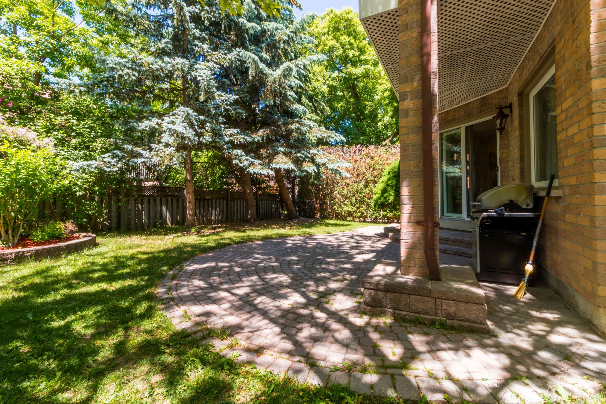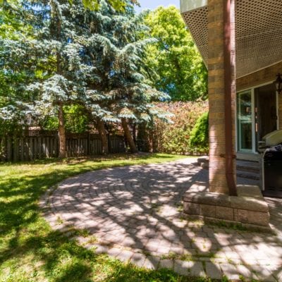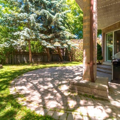 Landscaped backyard has covered stonework patio and beautiful mature trees that provide an incredible mix of sunny and shady spots in the backyard. If you love the shade or worship the sun, this yard will be your own private oasis.