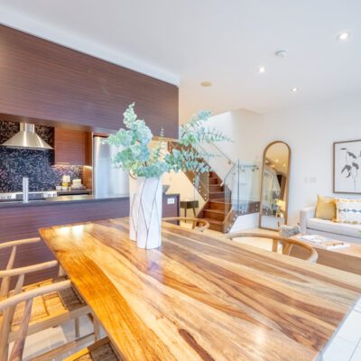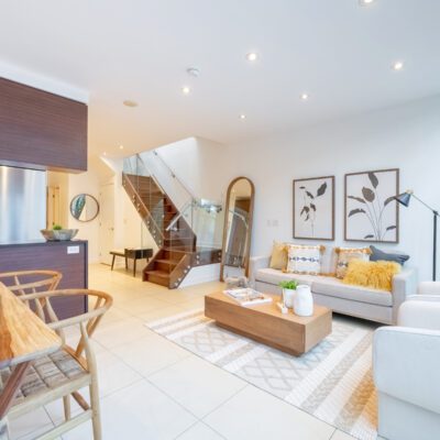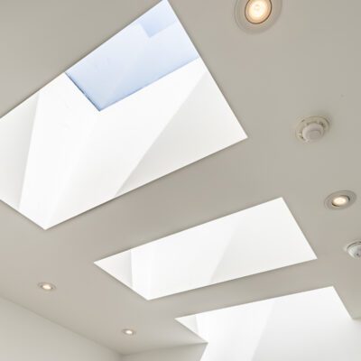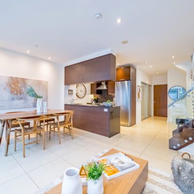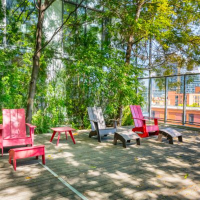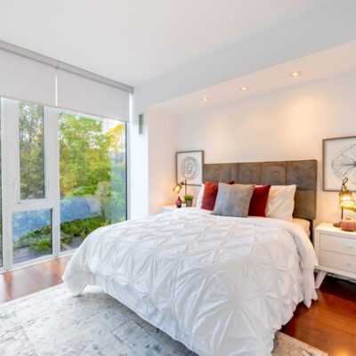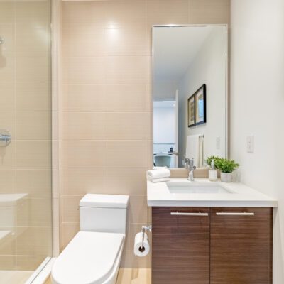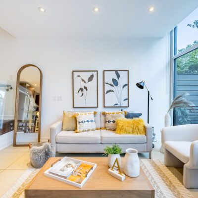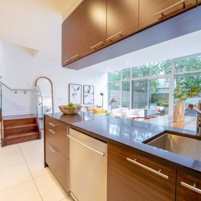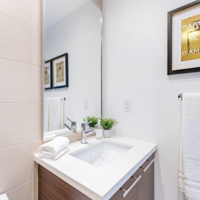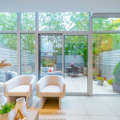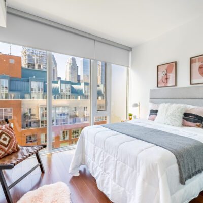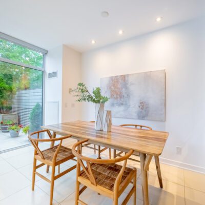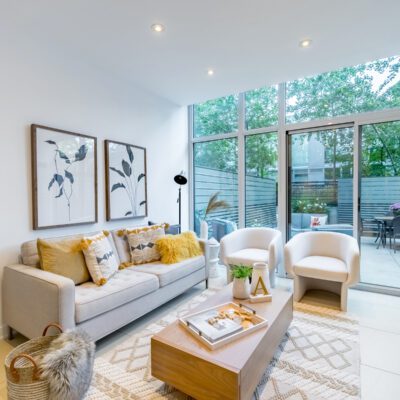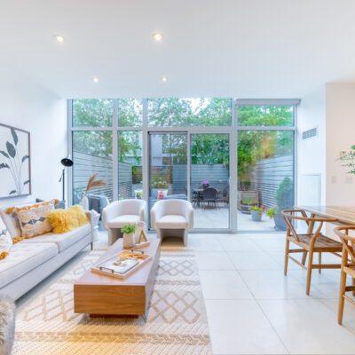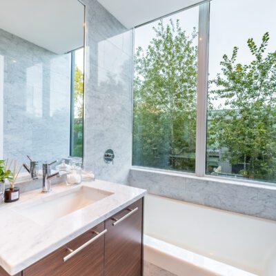 Urban living featuring suburban home amenities, this bright and airy open concept space features floor-to-ceiling windows, multiple skylights, and spa-like bathrooms.