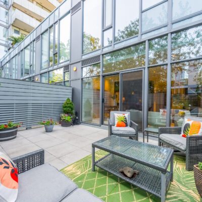 An Urban Oasis Found! 2+ townhouse style condo with upgraded features through-out, extra wide floor plan and almost 400 sq ft garden patio. Steps away from all that Toronto has to offer!