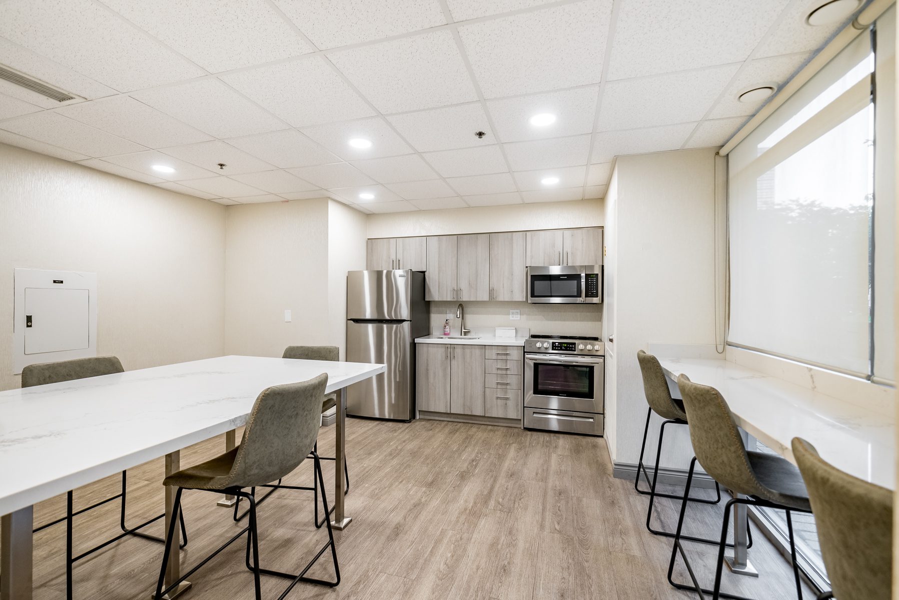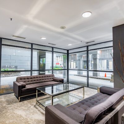 Building amenities provide a range of services that promote relaxation and well-being while at home. Residents can enjoy access to a rooftop deck with BBQs, a gym, sauna, games room, 24-hour concierge services, a party room with kitchen, and direct access to a beautifully landscaped terrace.